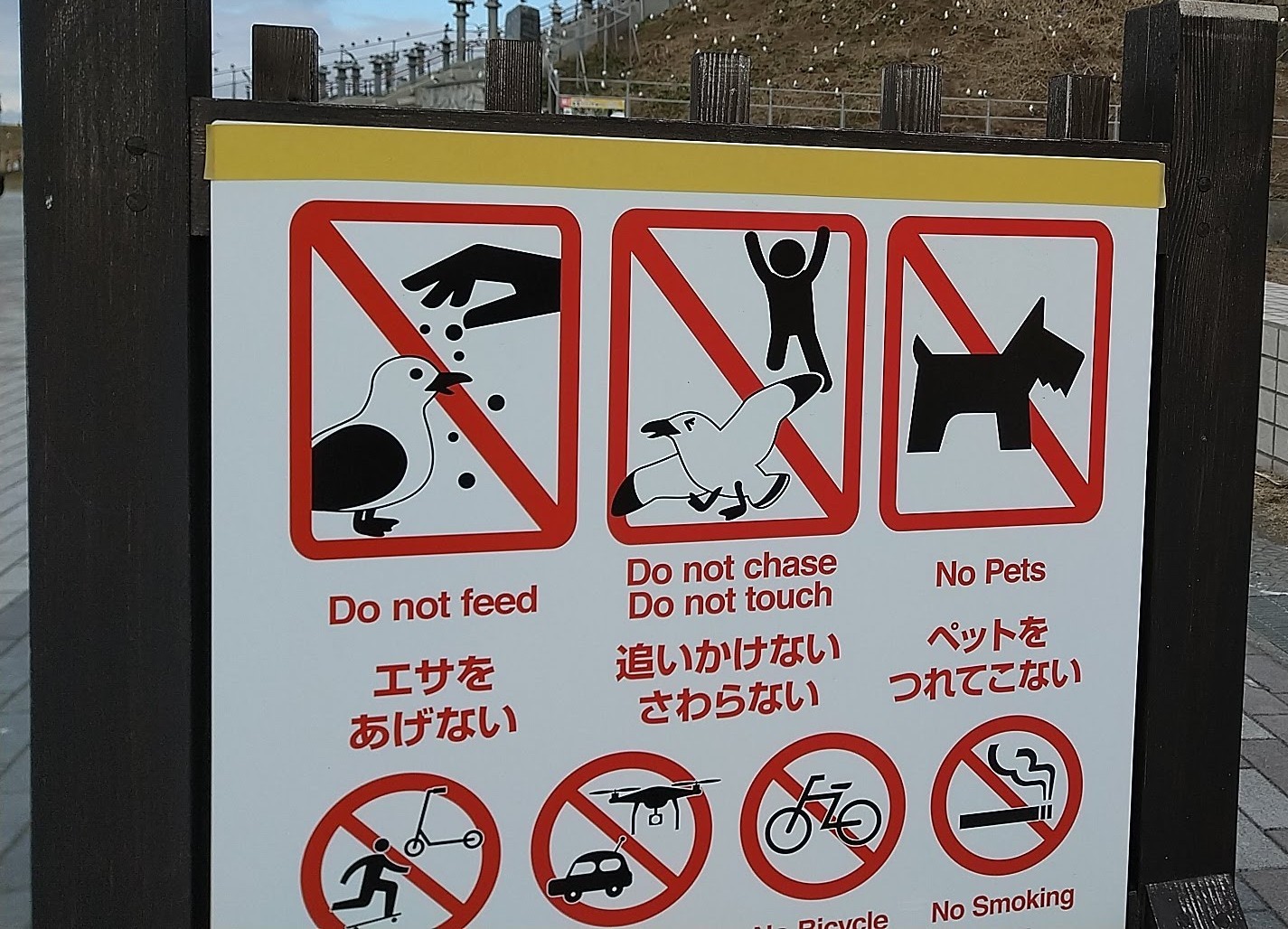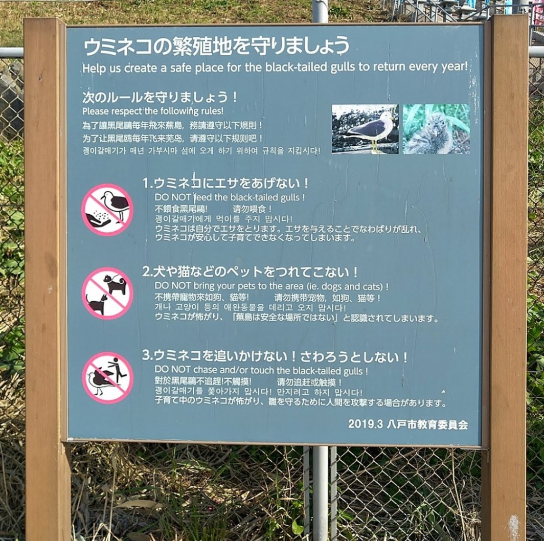 子育て中のウミネコに人が近づきすぎると、ヒナが驚き(怖がり)自分の巣を離れてしまうことがあり、他の親鳥に攻撃され死んでしまうことがあります。