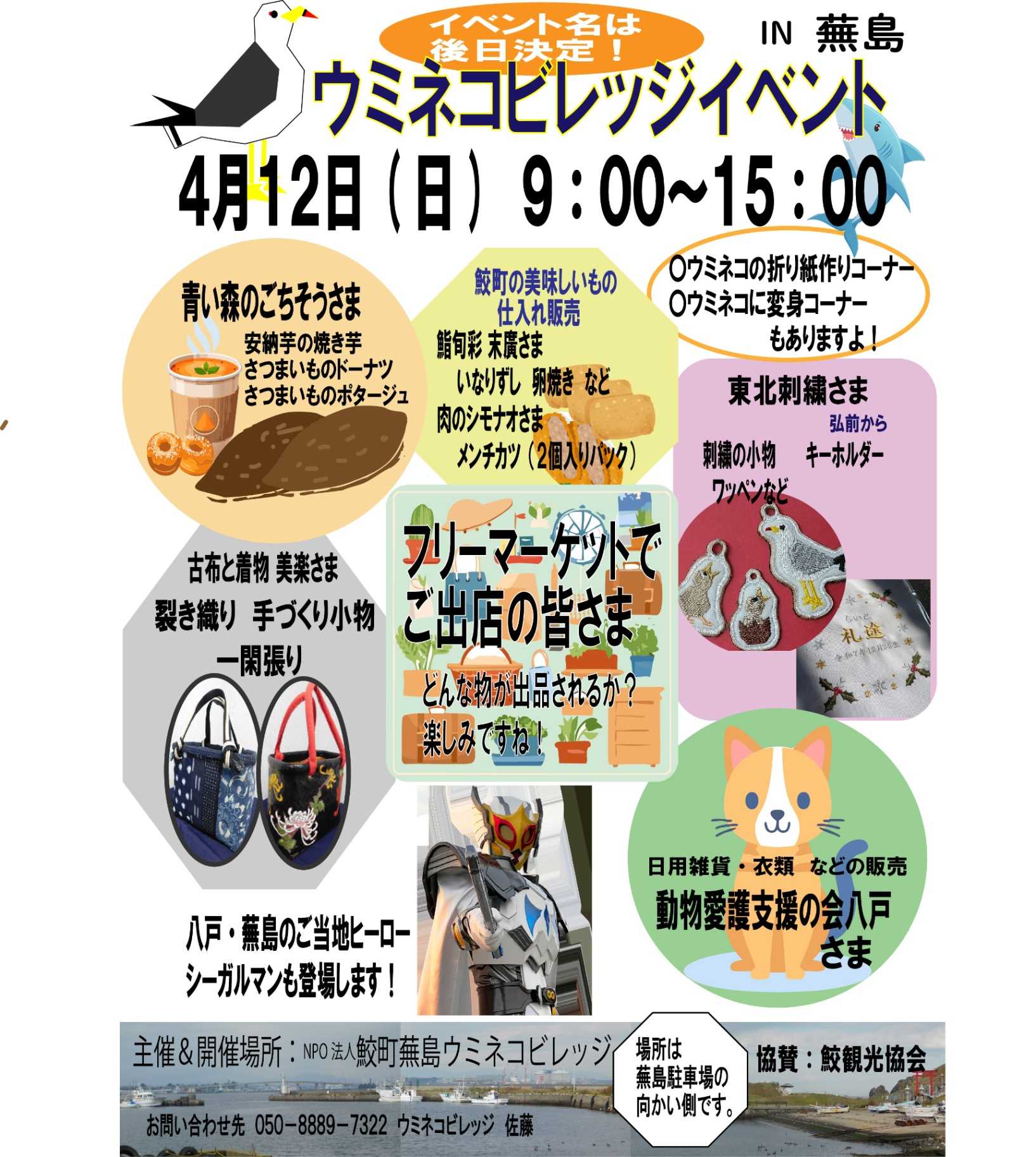 📢この催しの名称も募集しています。採用された方には、ウミネコビレッジのグッズ(Tシャツなど)をプレゼント!皆さんぜひご応募ください。