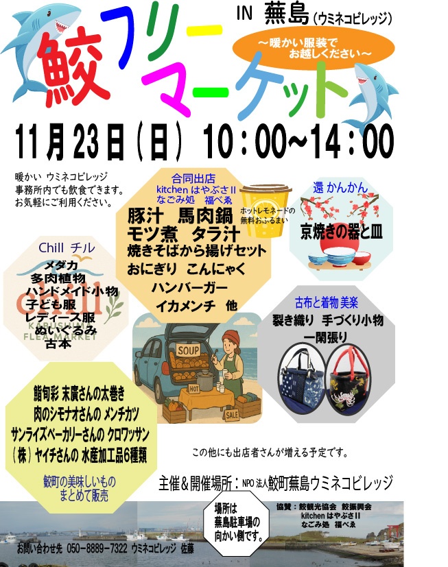 11月23日日曜日、ウミネコビレッジ初のイベント、鮫フリーマーケットを開催しました。